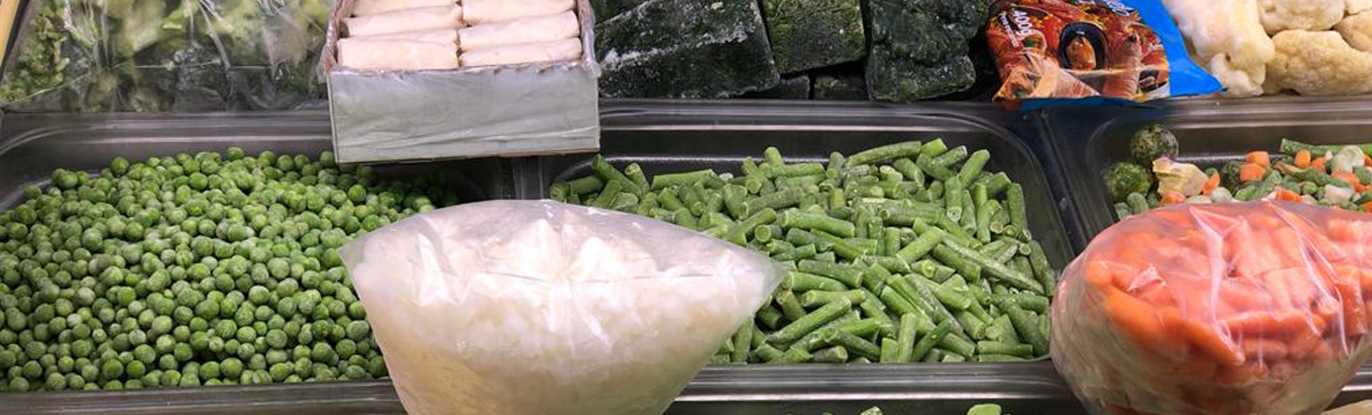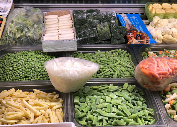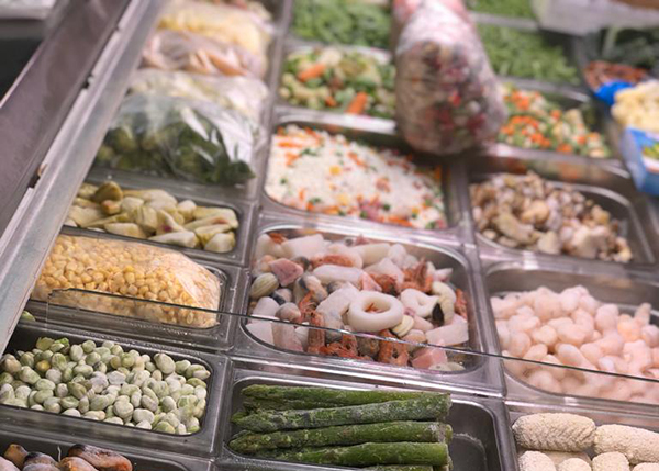 Gran variedad de verduras, marisco, precocinados, helados y pescados congelados a granel.