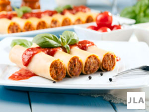 pasta con bechamel con rellenos de diferentes sabores: atún, carne o espinacas.