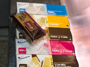 Nata, Vainilla, Nata – fresa, Nata – café, Vainilla – chocolate, Vainilla – chocolate – nata, Turrón